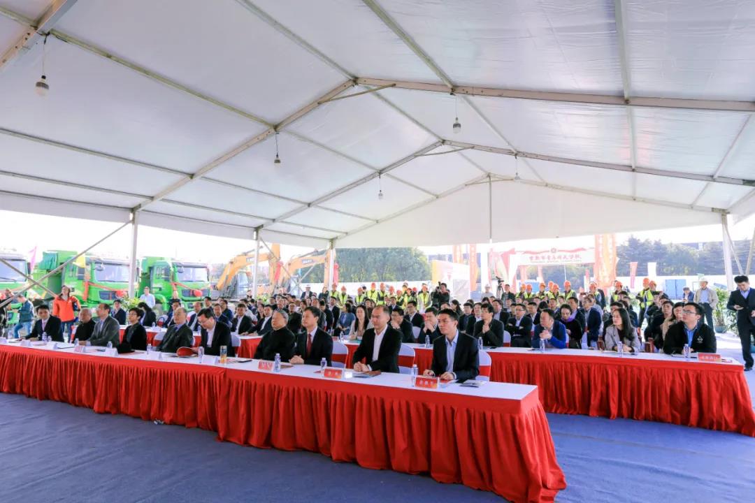 在喜慶的禮炮聲中,領導嘉賓們揮動金鍬,共同為學校進行奠基培土。參加儀式的全體人員共同見證了這一歷史時刻。