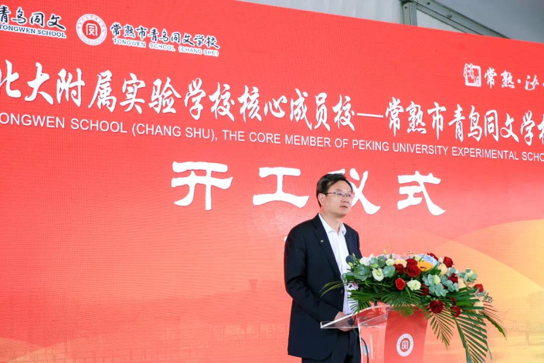 常熟市委副書記、市長焦亞飛表達了對學校的殷切希望和美好祝愿,希望青鳥同文充分利用豐厚資源和集團化辦學優(yōu)勢,把國際化的教學理念與優(yōu)秀傳統(tǒng)文化相結合,開發(fā)別具一格的特色課程體系,打造個性化、多樣化、信息化的教學產(chǎn)品,在追求優(yōu)質(zhì)特色教育的道路上行穩(wěn)致遠。常熟將全力當好服務項目的貼心人,聚集資源、聚焦政策、聚合力量,為學校高效率推進、高標準建成、高質(zhì)量運營提供全方位的支持,共同將常熟市青鳥同文學校打造成長三角地區(qū)高端國際學校的標桿。