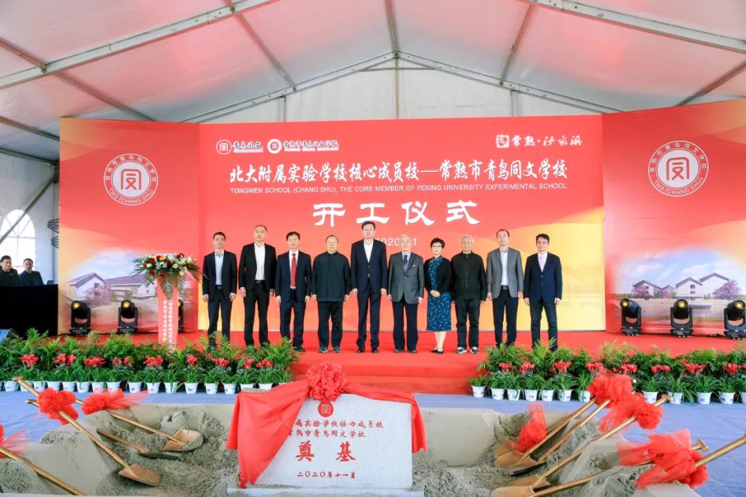 2020年11月10日,常熟第一所國際化自然學校——常熟市青鳥同文學校在沙家浜鎮(zhèn)隆重舉行奠基儀式。北京大學原副校長呂忠生,北京大學原副總教務長吳寶科,北京大學地球與空間科學學院教授焦維新;中共常熟市委副書記、常熟市人民政府市長焦亞飛,常熟市人民政府副市長趙紅,常熟市委教育工委書記、常熟市教育局局長陳邵東;沙家浜鎮(zhèn)黨委書記、沙家浜旅游度假區(qū)黨工委書記徐峰;北京青鳥同文教育總經(jīng)理兼總校長鄭彤,副總經(jīng)理石宛鑫,副總經(jīng)理楊蘇丹,籌備部副總監(jiān)孫五麗,運營管理部副總監(jiān)李楠;常熟市青鳥同文學校校長陳恩顯等相關領導和嘉賓出席開工儀式。