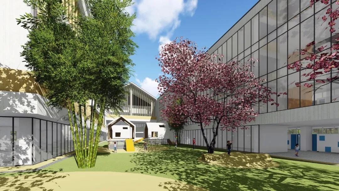 38畝的自然綠地融入到校園一體化設計中,孩子們不出校門就可以走入大自然的懷抱,探險、露營、種植……,這些以往要到很遠的地方才能實現(xiàn)的活動,將會成為孩子們校園學習生活的一部分,孩子們將融入自然,直面各種現(xiàn)實問題,自主探究解決問題的方法。