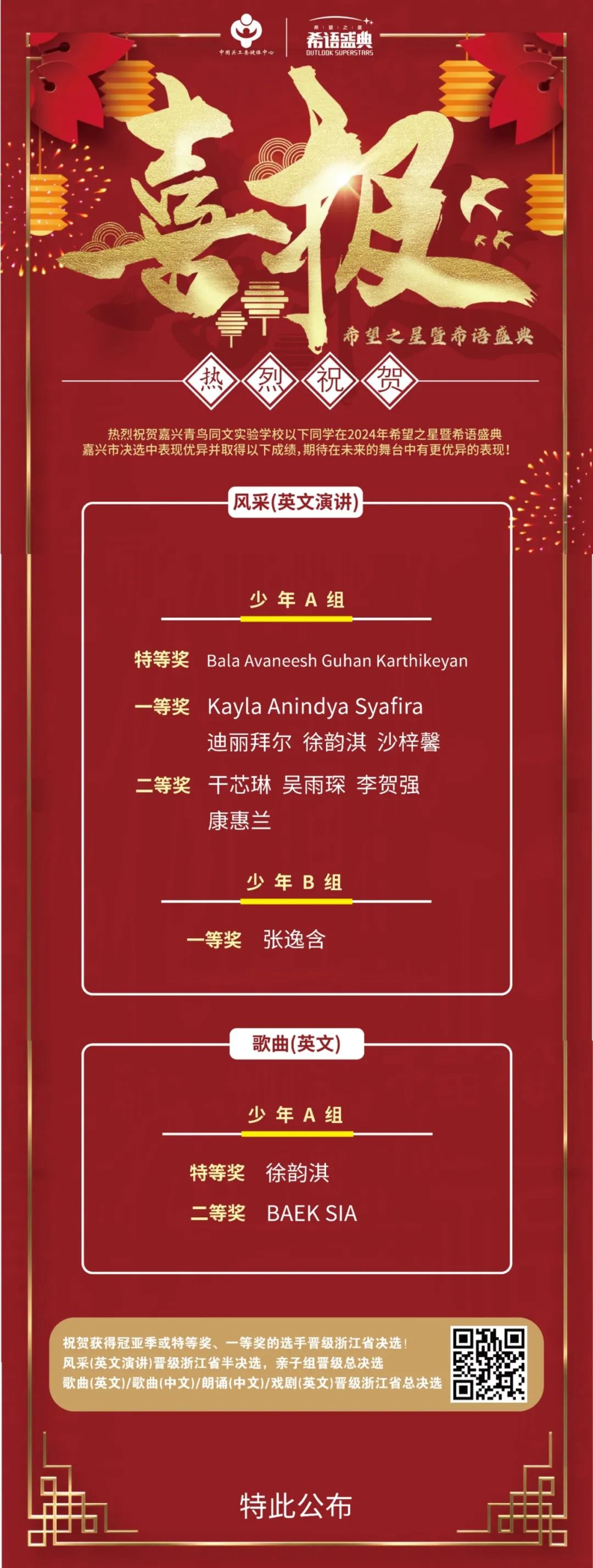 這一系列的紀(jì)錄突破,彰顯了嘉興同文學(xué)子在英文賽事中的卓越水平和不懈追求。我們將繼續(xù)以更高的標(biāo)準(zhǔn),更堅定的信念,書寫著屬于我們的輝煌篇章,為校園帶來更多的榮耀與驕傲!