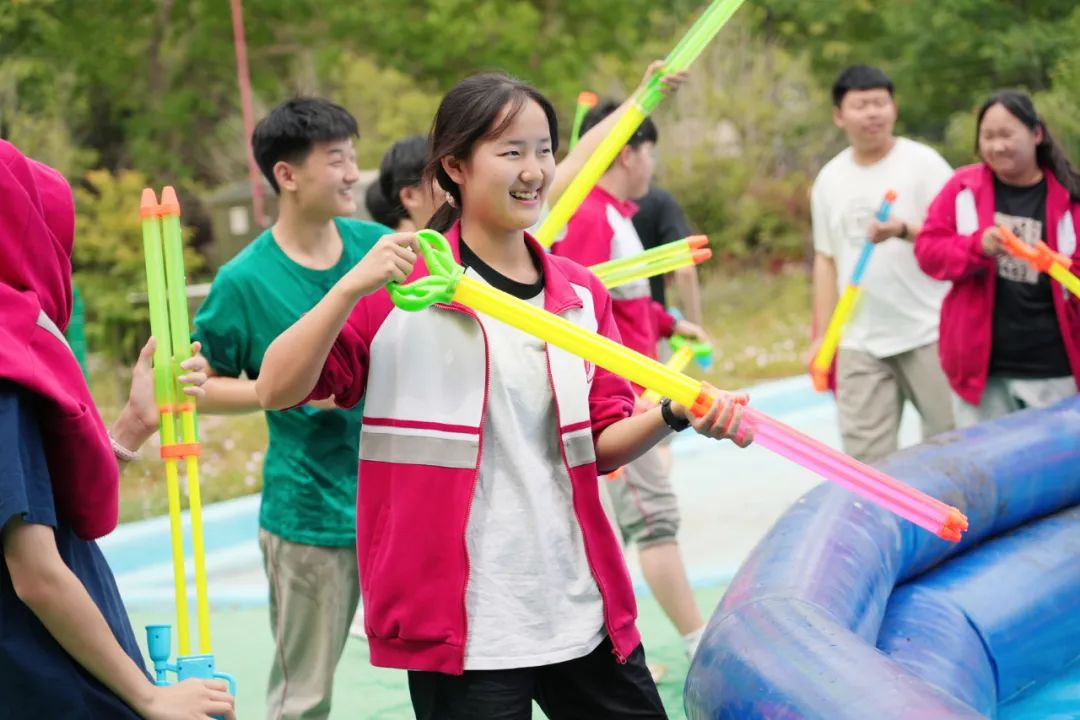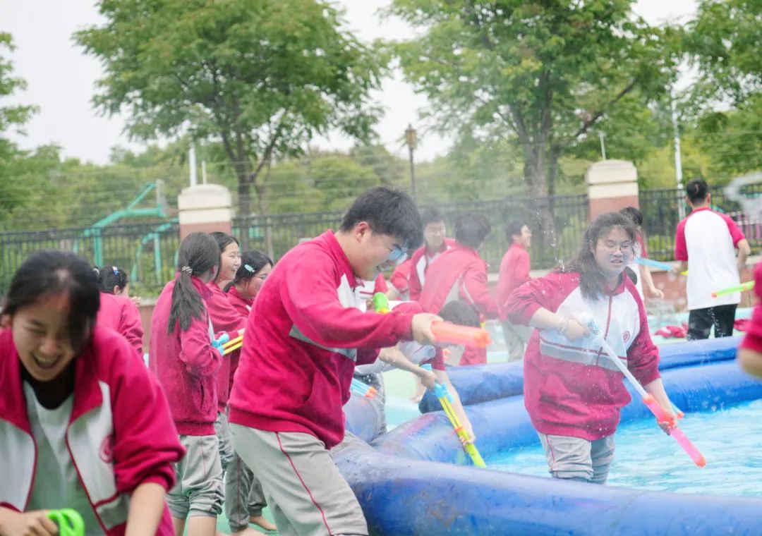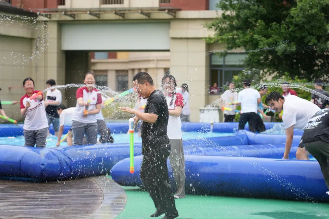 在同學們的盛情邀約下,平日里嚴肅的老師們也加入其中,師生同樂,共享這份夏日的清涼。
